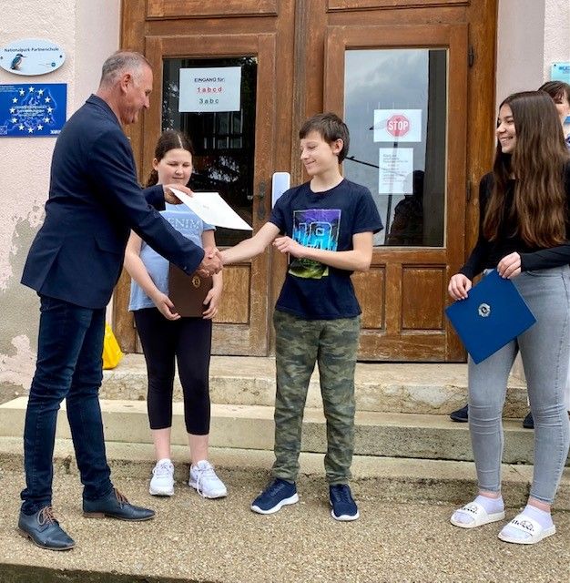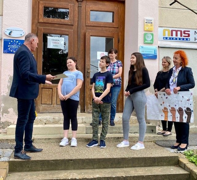 Den Siegern aus 2a (Lehrerin Michelle Smith) 2c (Lehrerin Putz Bianca) wurde am Freitag, dem 13. Mai 2022 persönlich vom Lions-Club-Präsidenten Michael Ankowitsch gratuliert.
