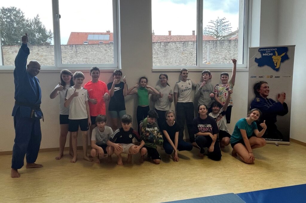 Im März fanden an unserer Schule mehrere Workshops zum Thema „Sicheres Fallen“ statt. Salomon Slatner, Trainer des Judo Vereins Hainburg – Sportunion Römerland Fighters, war bei uns zu Gast!