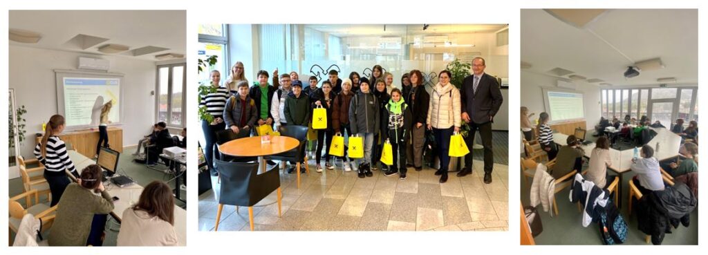 Am Donnerstag, den 13. 4. besuchten die Schüler*innen der 2c mit ihrem Klassenvorstand Lisa Holkovic die Bankstelle in Hainburg/Donau. Zunächst gab es eine ausführliche Erklärung des Schalterbereichs und der Selbstbedienungsgeräte. Nach einer kleinen Stärkung folgte dann noch eine Präsentation zum Thema Zahlungsverkehr.
